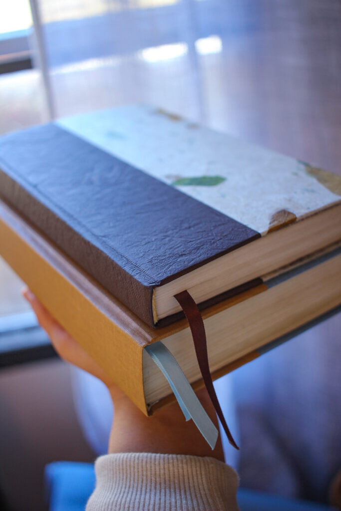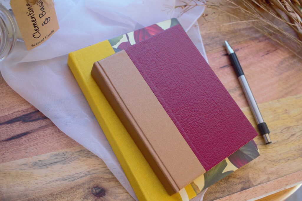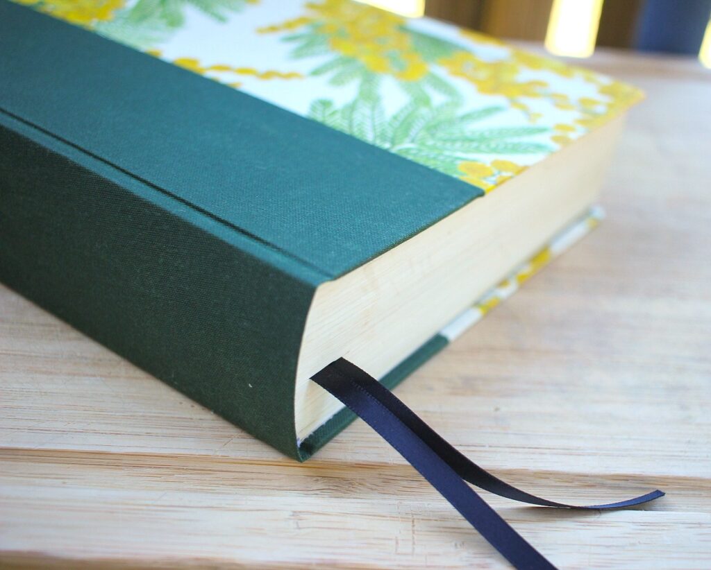 – Book cloth or imitation leather will be used for the exterior cover (casing) and patterned paper will